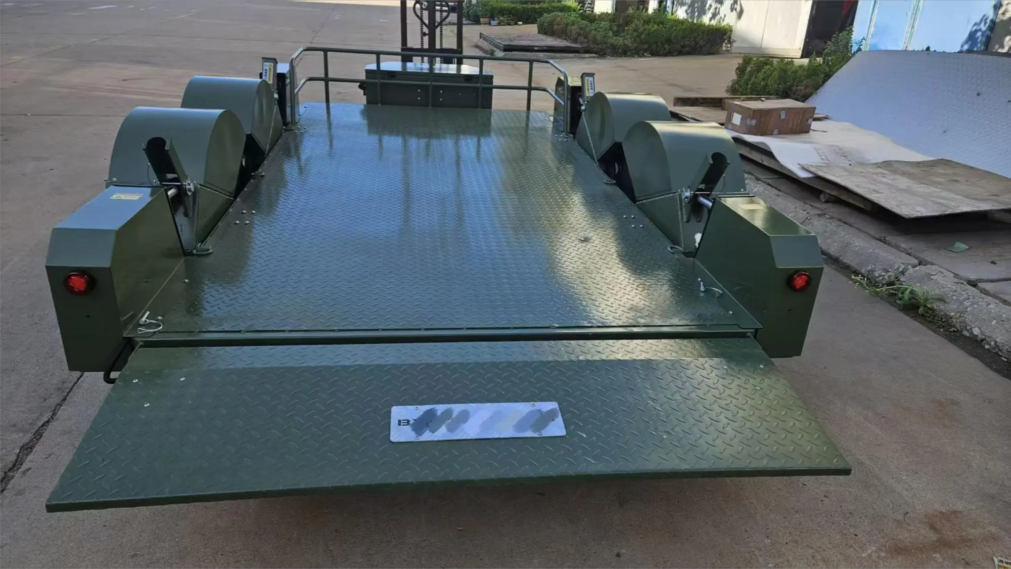 पूरे प्लेटफॉर्म में डायमंड ट्रेडेड एंटी-स्लिप स्टील प्लेट्स हैं। पहनने के लिए प्रतिरोधी और गैर-पर्ची सतह ट्रैक की गई मशीनरी द्वारा प्रत्यक्ष (रोलिंग) का सामना कर सकती है, जो परिवहन के दौरान कार्गो या वाहनों को फिसलने से प्रभावी ढंग से रोकती है।
