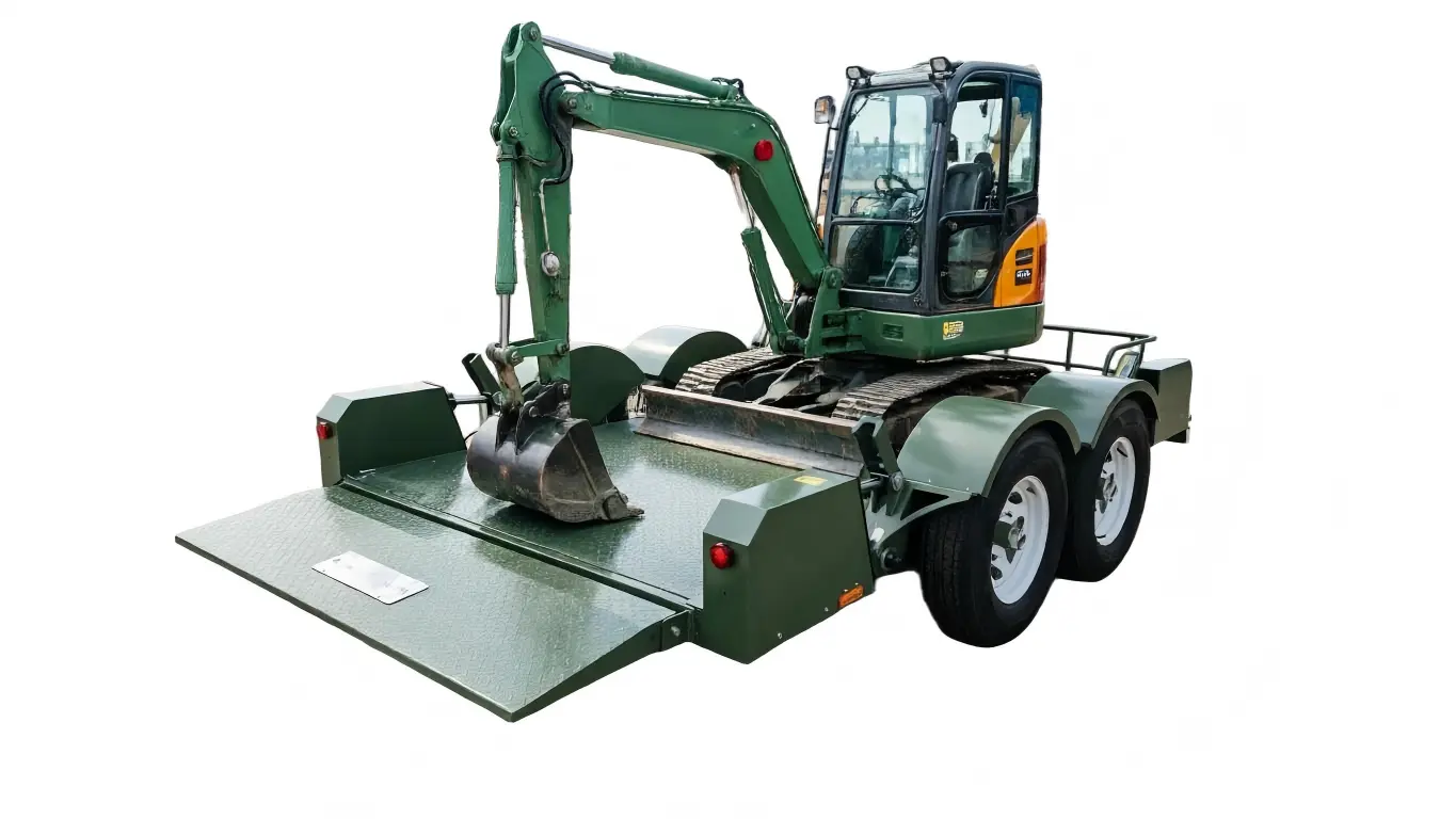निर्माण मशीनरी परिवहन: मिनी उत्खनन, स्किड स्टीयर लोडर (बॉबकैट्स), या छोटे रोड रोलर के परिवहन के लिए उपयुक्त।