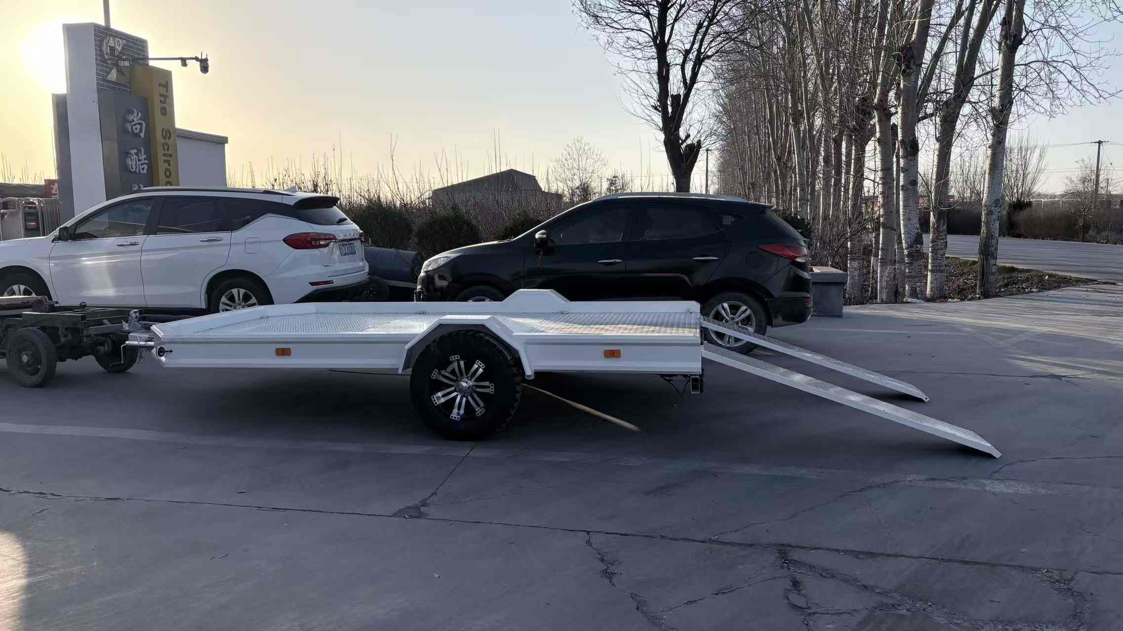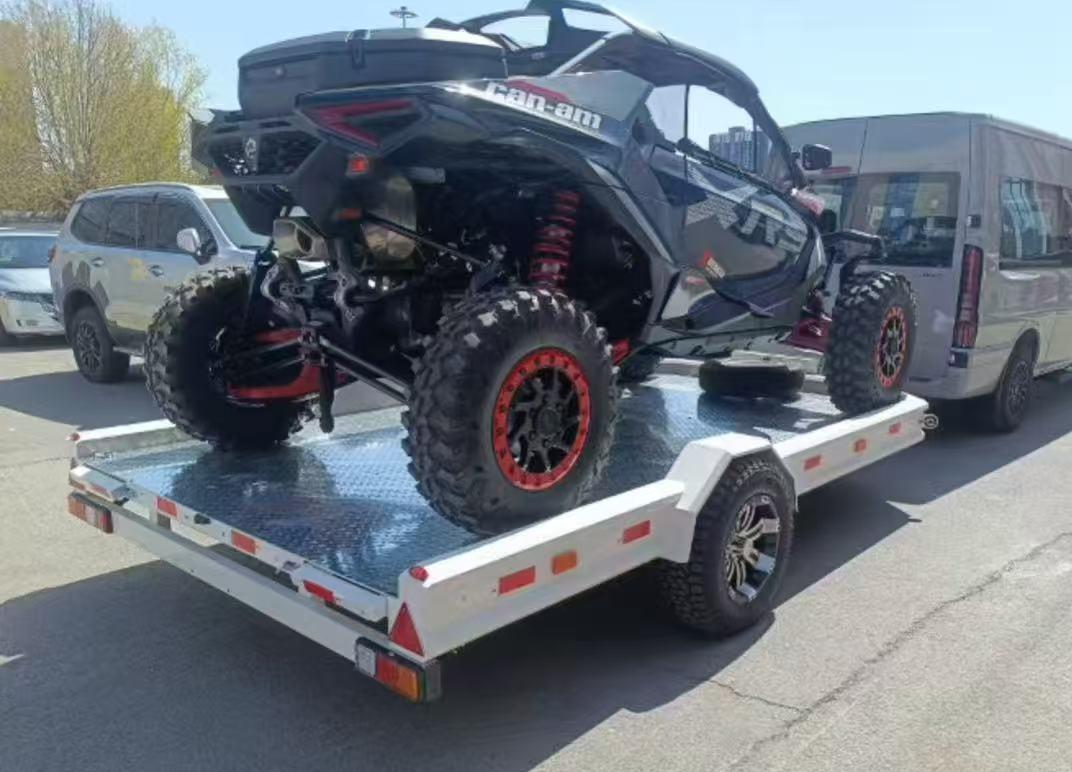 फ्लैटबेड डेक का निर्माण एंटी-स्लिप एल्यूमीनियम प्लेट (या टिकाऊ स्टील प्लेट) से किया गया है, जो परिवहन के दौरान कार्गो को स्थानांतरित होने से रोकने के लिए एक उच्च-कर्षण सतह प्रदान करता है। एल्यूमीनियम डेक विकल्प हल्का और संक्षारण प्रतिरोधी है, जो गीले या तटीय वातावरण में बाहरी उपयोग के लिए आदर्श है, जबकि स्टील डेक भारी, घर्षण भार के लिए अधिकतम स्थायित्व प्रदान करता है। लो-प्रोफाइल डिज़ाइन और एकीकृत रैंप एटीवी, यूटीवी और छोटे उपकरणों को लोड करना त्वरित और आसान बनाते हैं।