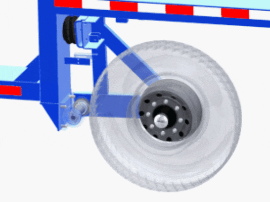 स्टील/रबर स्प्रिंग्स को इन्फ्लेटेबल रबर ब्लैडर से बदल देता है; दबाव को गतिशील रूप से समायोजित करने और फ्रेम और धुरी का समर्थन करने के लिए एक एयर कंप्रेसर और ऊंचाई नियंत्रण वाल्व के साथ जोड़ा गया। मुख्य लाभ:
